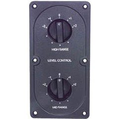 Vertical dual L-pad face plate. Special recessed L-pad housing for High and Mid L-pads. Comes complete with two knobs. 2-5/8 x 5-3/16 x 1. For use with any standard 3/8 shaft diameter L-pad.
